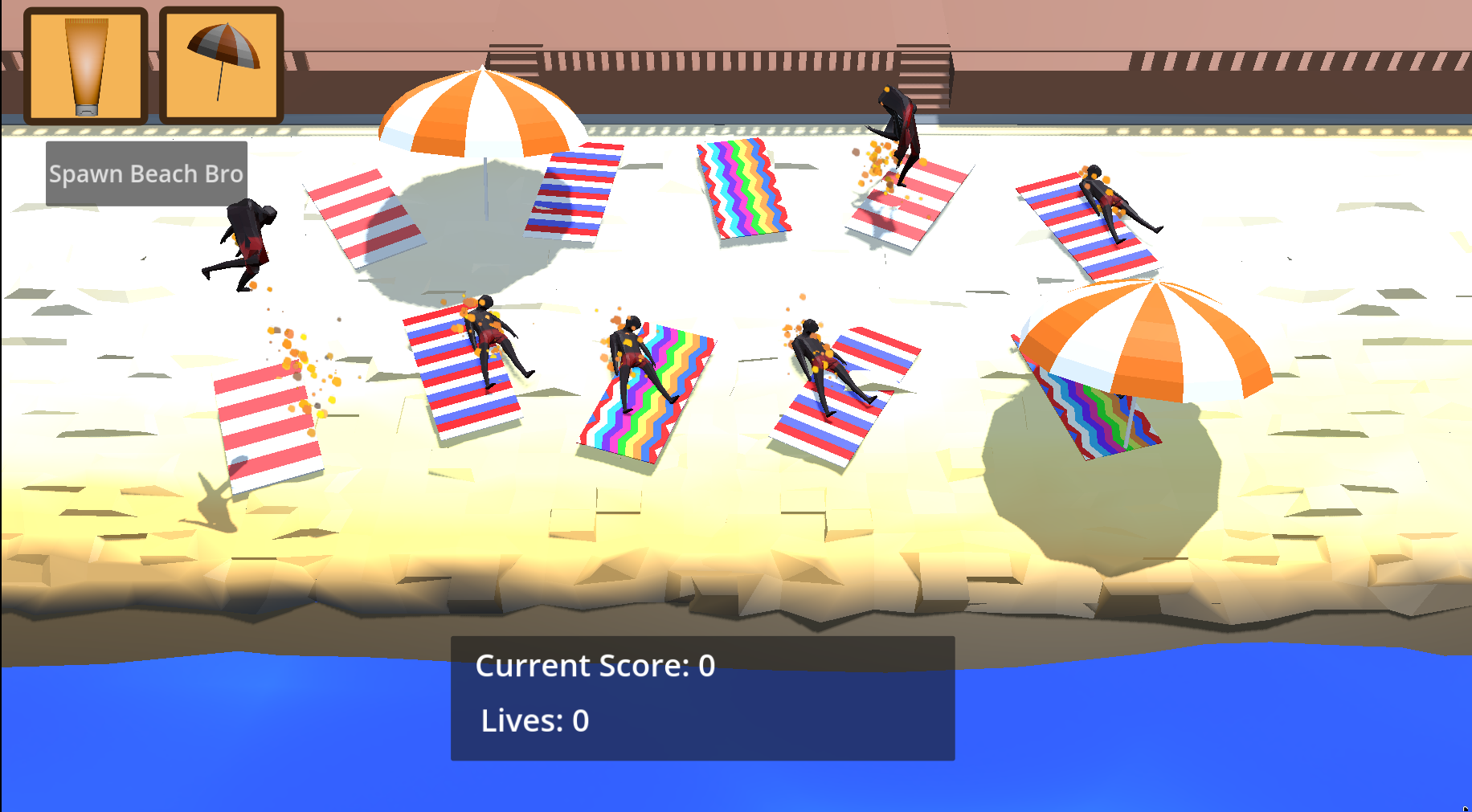 Your mission is to get the perfect tan on as many bros as you can. Chuck into the water when they're ready.